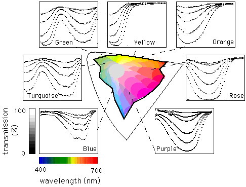 trial lenses are tinted with one of seven dyes, providing seven colours. There